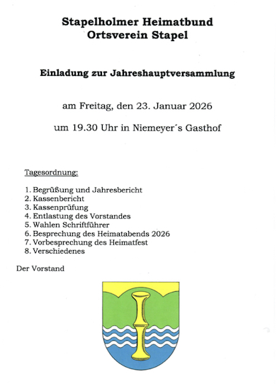 Veranstaltungstermine senden Sie bitte unter Angabe von Datum, Uhrzeit und Veranstaltungsort an termine@gemeinde-stapel.de